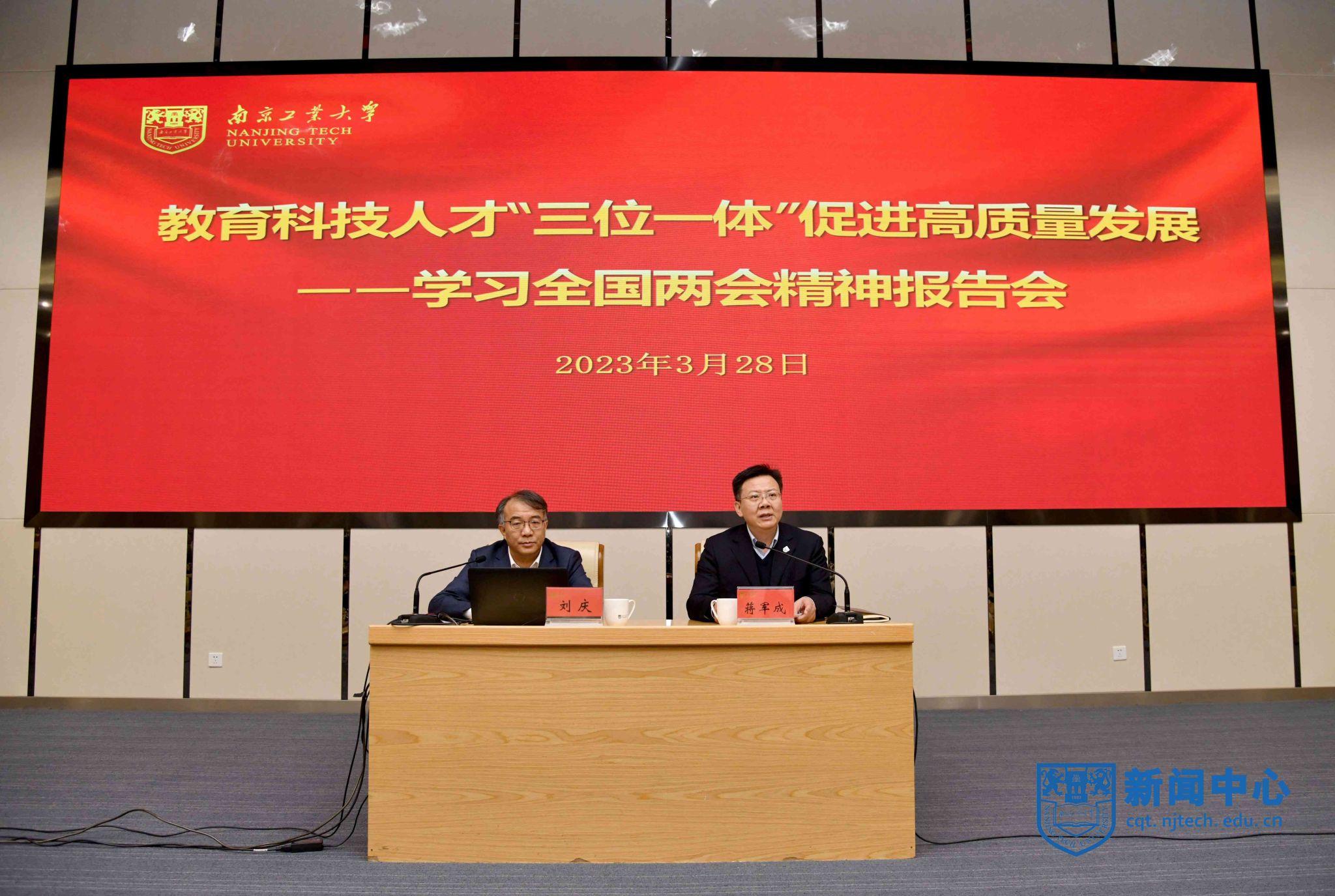 3月28日上午,AC米兰召开学习2023年全国两会精神报告会。全国人大代表、长三角国家技术创新中心主任、江苏省产业技术研究院院长、AC米兰先进轻质高性能材料研究中心主任刘庆教授作专题报告。全体在校校领导、校院两级党委理论学习中心组成员、全校中层干部、师生代表等参加会议。校长蒋军成主持会议。