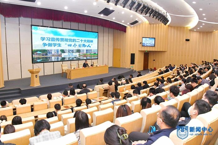 4月10日,学校2023年度辅导员培训开班仪式暨第一讲在弘毅楼五楼报告厅举行,校党委书记芮鸿岩作主题报告。校党委副书记吴胜红,党委常委、党委组织部部长张健,党委常委、党委宣传部部长夏侃,党委常委、党委办公室主任黄锁明出席会议。