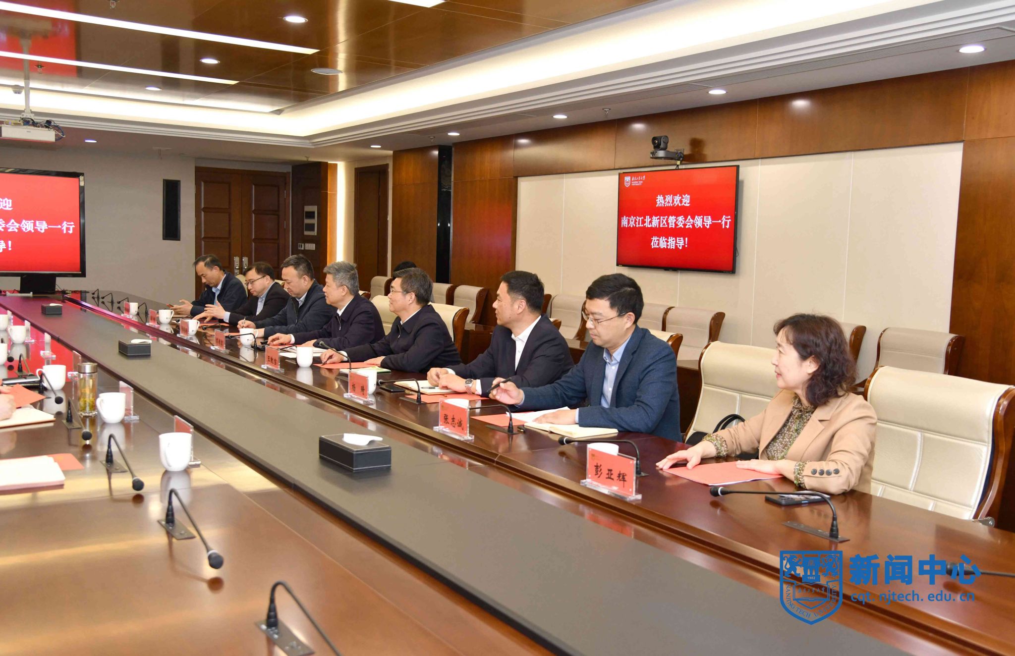 芮鸿岩书记介绍了学校基础条件、特色优势、未来愿景以及服务江北新区建设发展等方面的情况。他表示,多年来学校坚持扎根中国大地办大学,胸怀“国之大者”潜心立德树人,坚持“四个面向”提升科技自立自强,对接国家重大战略和经济社会发展需求,探索出一条产学研协同创新的特色办学道路。他指出,未来,学校将以“立足新区”的方位意识、“是新区人”的主人翁意识、“为新区做什么”的责任意识,进一步聚焦产教融合,共建教育示范田;进一步聚焦新区亟需,共建科技联合体;进一步聚焦人才引育,共建人才磁力场。