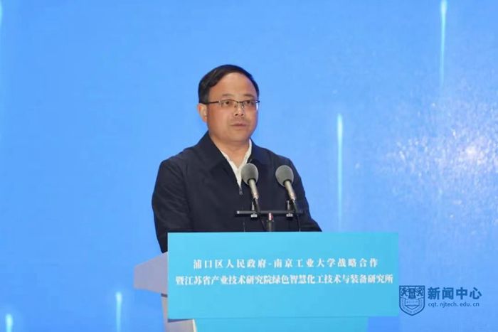 芮鸿岩书记致辞表示,此次签约是校地合作的有益实践、积极探索,希望优化布局,不断提升战略合作的广度,形成全方位、多层次、宽领域合作;增进共识,不断提升战略合作的深度,做好学校学科地图与浦口产业地图深度融合;强化协同,不断提升战略合作的准度,共同打造具有国际水平的绿色智慧化工技术与装备技术研发中心与产业基地。