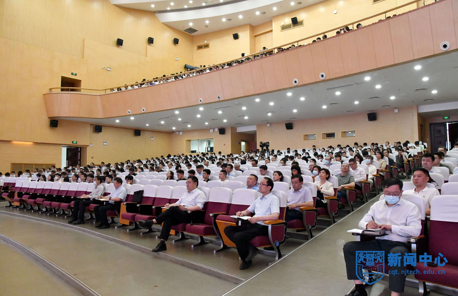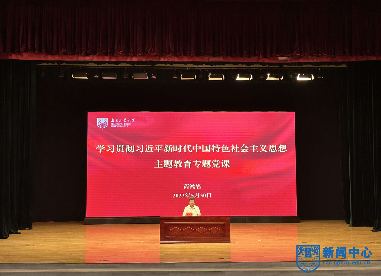 5月30日下午,学校主题教育领导小组组长、党委书记芮鸿岩以“牢记殷殷嘱托落实根本任务加快建设高质量高等教育体系”为题在江浦校区博雅堂为党员、干部和师生代表讲授专题党课。省委主题教育第十八巡回指导组组长陈国祥莅临指导。