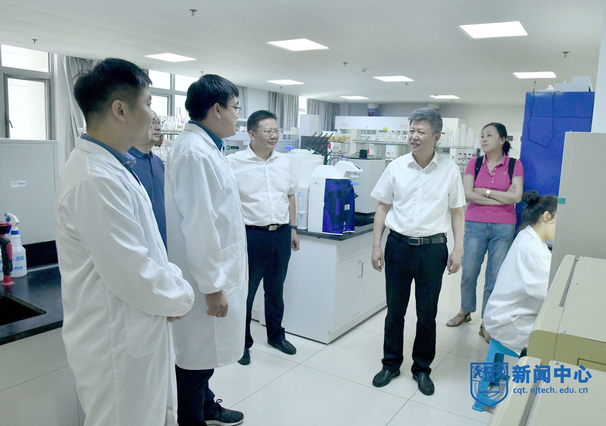 校领导一行先后走访材料化学工程国家重点实验室、江浦校区东南门岗、龙华智谷工地、东苑食堂、大学生活动中心等地。每到一处,和大家深入交谈,仔细询问暑期的生活、工作等情况,详细了解假期实验室安全、校园安保、基本建设、餐饮服务、招生录取等工作的运行保障情况,对假期冒高温、战酷暑,坚守岗位的师生员工们表示衷心感谢,并为他们送上防暑降温用品。