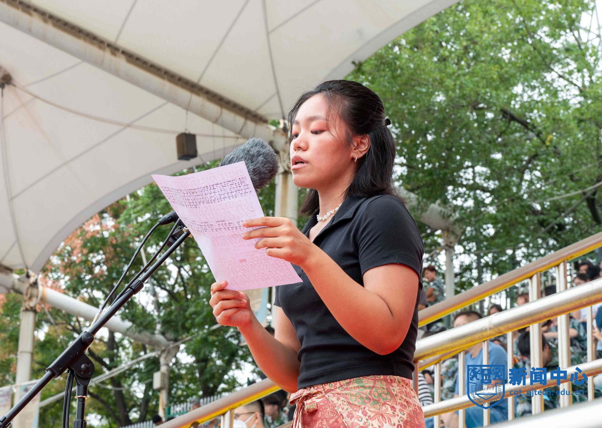 留学生新生代表、国贸专业黄妮雅发言