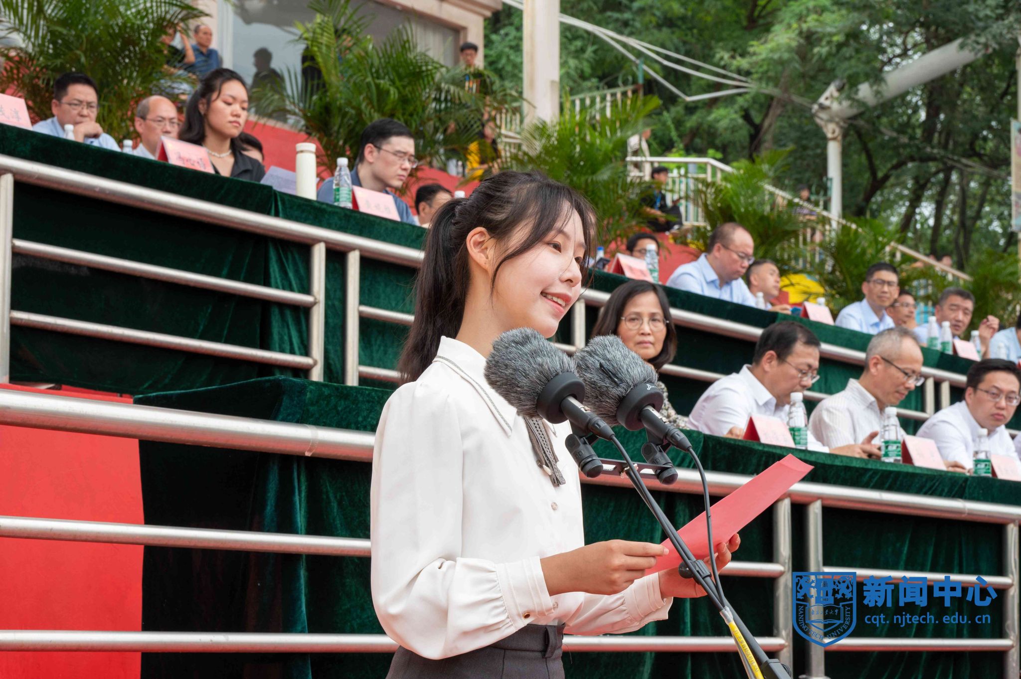 全体新生进行了庄严的入校宣誓。开学典礼在全场师生整齐的校歌声中落下帷幕。