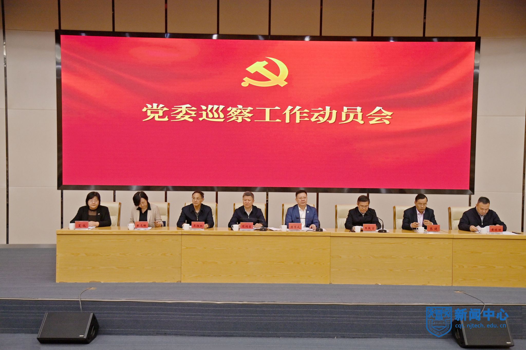 会上,校长蒋军成宣读了《关于巡察组人员授权任职及任务分工的决定》,本轮巡察成立6个巡察组,将对安全科学与工程学院党委、体育学院党总支、柔性电子(未来技术)学院党委、后勤党委、企业党工委、校部机关党委教师工作部、人事处党支部、校部机关科学研究院党支部、校部机关党委继续教育处党支部等8个基层党组织开展巡察。柔性电子(未来技术)学院党委书记马明辉作为被巡察党组织主要负责人代表作表态发言,第五巡察组副组长、药学院党委书记王飞作为巡察组副组长代表发言。