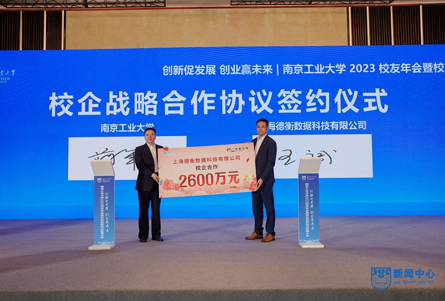 校友企业上海德衡数据科技有限公司捐款100万元设立奖教金,投入2500万元共建AC米兰—上海德衡创智研究院。蒋军成与校友王斌董事长现场签约。