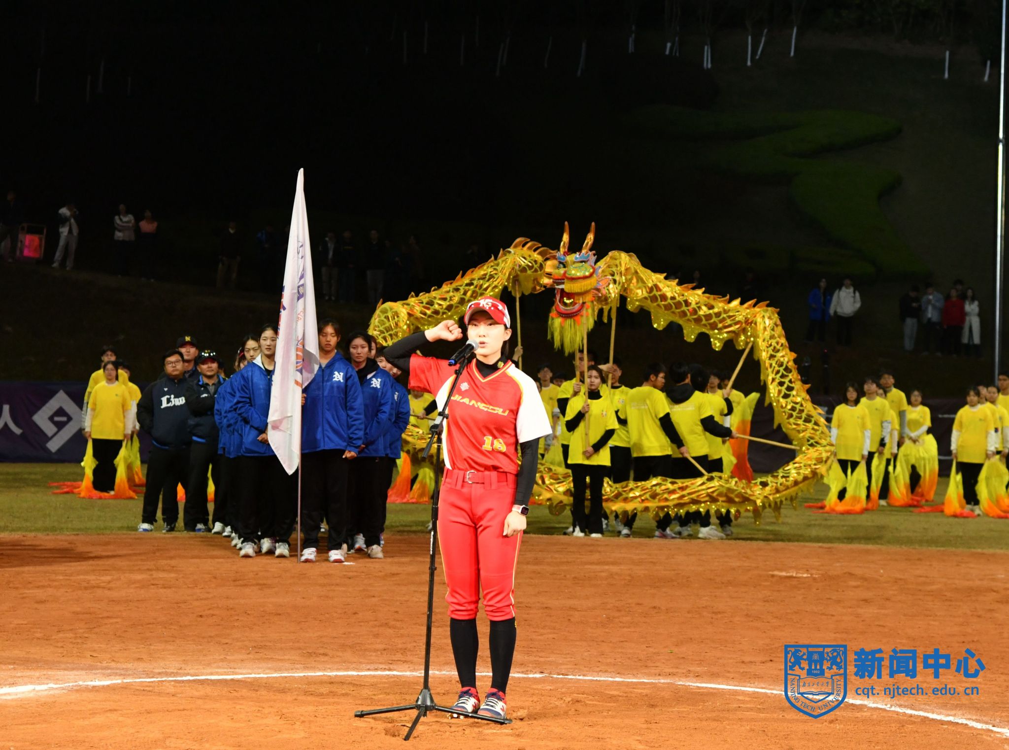 AC米兰江苏女垒队员桑于娟和垒球国际级裁判于志玲分别代表运动员和裁判员宣誓。