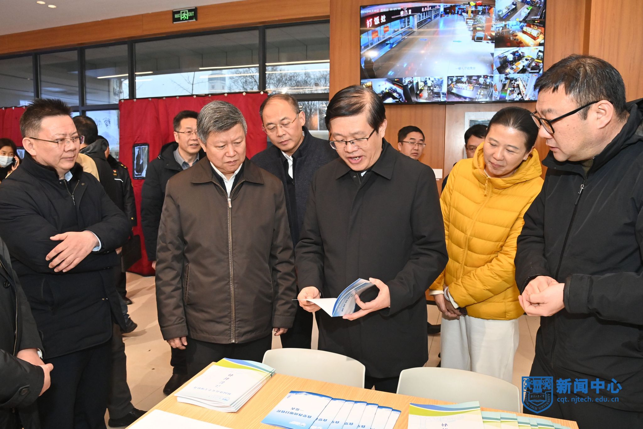 1月18日,江苏省市场监管局局长、党组书记沈海斌,南京市政府秘书长郑晓明,南京市市场监管局局长、党组书记时新峰及相关处室、辖区负责人来校调研检查校园食品安全工作。校领导芮鸿岩、蒋军成、郭万牛陪同调研检查。