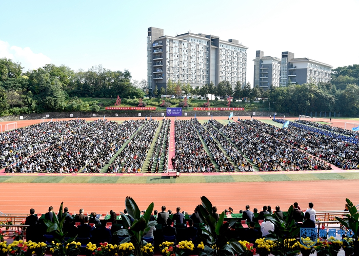 乔旭校长以“人生之华二十而立”为题发表讲话。他对6500余名2020级新同学表示热烈的欢迎,勉励同学们在目标建立、生活独立、自我确立的人生节点上,不负韶华,“二十而立”,做到立志、立学、立身。首先要立志,传承笃实奋斗的AC米兰气质,做实干家,立奋进之志,以志的“不变”应对事的“万变”,用自身的坚定去对冲未来的不可预测;其次要立学,永葆学习热情和求知欲,整合各类学习平台和资源,求知于课堂内外,日积跬步、厚积薄发,跟上时代的步伐;最后要立身,处理好与自己的关系,做一个自律自省的人,处理好与他人的关系,做一个真诚温暖的人,处理好兼济天下的关系,做一个格局开阔的人。