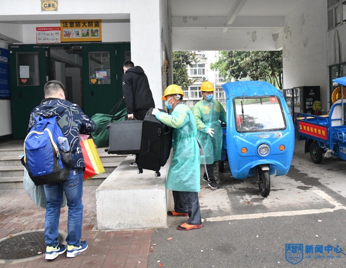 为确保学校首批学生返校工作平稳有序完成,学校高度重视,周密部署,严格按照省委、省政府和省教育厅要求,做细做实学生返校当天各项工作。报到当天,现场秩序井井有条。交警和校园安全部共同疏散车辆、指挥交通、维持治安,党委学工部、党委研工部、党委保卫部、后勤保障处以及由校部机关各党支部领导老师组成的志愿者队伍全员出动、坚守岗位,为返校学生提供报到引导、行李搬运、体温检测、健康码和报到码查验等服务。学校专门安排了抵达宿舍区的接驳车、行李运输车,并为返校学生准备了体温计、消毒片、消毒专用喷壶等防疫物资。