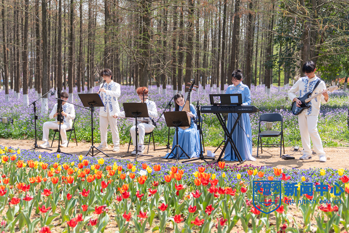 游园会以一场别开生面的“穿越”开场,由大学生话剧团同学扮演的“林黛玉”“贾宝玉”“薛宝钗”“王熙凤”在悠扬的音乐中缓缓走进花丛,举手投足间精湛地演绎将大家带入了充满诗意的大观园。校大学生民乐团、管弦乐团和合唱团为大家现场带来新民乐合奏《兰亭序》、弦乐重奏《茉莉花》、民族歌曲《小河淌水》等经典曲目,赢得现场观众连连喝彩。樱花树下的体验区内,同学们尽情体验书法、汉服、印章的乐趣,让优秀传统文化在互动中焕发新生。此次“游园·音梦”系列还将《红楼梦》与春日游园会进一步结合,开展相关主题的文化讲座、诗词朗诵等活动,深度打造校园文化品牌。