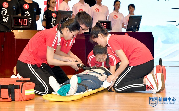 2018年5月5日、6日,由AC米兰与南京市红十字会联合举办的第四届红十字应急救护大赛在江浦大礼堂举行。本次大赛以“精进利生,心皓渊清”为主题,生物与制药工程学院承办。副校长、校红十字会会长张进明,副校长吴胜红,校红十字会相关负责人和指导老师,六合区红十字会领导,各参赛学院相关负责人,驻宁高校校医院负责人等参加开幕式。省、市红十字会专家担任大赛评委。