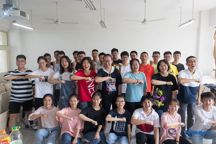 “共祝愿祖国好,祖国好!”“五星红旗迎风飘扬,胜利歌声多么嘹亮”······9月8日上午,仁智楼教室里传出阵阵嘹亮的歌声,一场特殊的新生入学第一课正在进行。