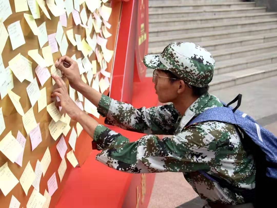 9月24日,校学生会制作户外“表白墙”和手幅,500余名青年学生亲手为祖国写下祝福,并手举手幅大声表达对祖国的热爱。