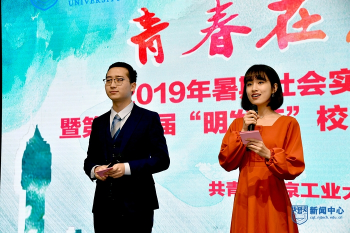 活动中,8支实践团队代表围绕“青春心向党·建功新时代”主题,开展了形式多样的分享。红色寻访团队结合前往13座城市18个革命圣地的寻访经历,讲述了中国共产党人的初心和使命;参与思政课专项实践的同学讲述了围绕“我的家乡我的国”开展的寻访调研故事;致善协会志愿者分享了暑期对农村留守儿童的义务支教经历;参加暑期政务实习的代表分享了在中央国家机关和南京市相关政府部门的实习经历,鼓励同学们关心国家发展,了解国情民情;博士生科技服务团、生物与制药工程学院的同学介绍了利用专业知识解决实际问题的实践经历;艺术设计学院的同学结合对梳篦非遗现状的调研,倡导进一步增强文化自信;电气工程与控制科学学院、经济与管理学院、土木工程学院的同学代表通过情景剧的表演,分享了对5G、海绵城市、垃圾分类等社会热点问题的理解。分享会还对在暑期社会实践中表现突出的先进集体和个人进行了表彰。