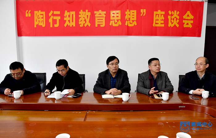 在陶行知教育思想座谈会上,老师们畅谈了对陶行知教育思想、教育实践的理解和认识,表示将进一步锤炼师德、铸牢师魂,更好地承担起立德树人重任。教学事务部副部长、教学评估处处长王济奎、科学研究部自然科学处副处长高振、研究生院学科建设处副处长李学明与老师们进行了互动交流。校党委常委、党委宣传部部长张健在讲话中肯定了举办此次活动的意义,希望老师们深入学习贯彻习近平总书记关于教育、教师的重要论述,认真学习“伟大的人民教育家”“万世师表”陶行知先生的高尚品质和崇高精神,以时钧先生、章丽华老师等为榜样,坚守职业理想,永葆教育情怀,始终爱党爱国、爱岗爱生,做到以德立身、以德立学、以德施教、以德育德,努力成为“四有好教师”。党委教师工作部常务副部长秦卫明主持座谈会。
