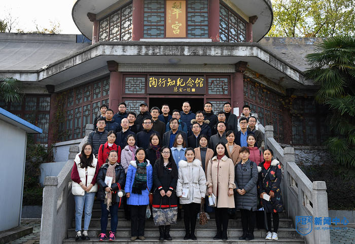 11月29日下午,党委教师工作部组织教师代表前往陶行知纪念馆参加2019年师德建设重点月实践教育活动。本次活动围绕“四个一”(观看一部陶行知纪录片,阅读一本陶行知传记,参观一次陶行知纪念馆,参加一场陶行知教育思想座谈会)展开。师德师风建设相关职能部门负责人及各学院教师代表近40人参加活动。