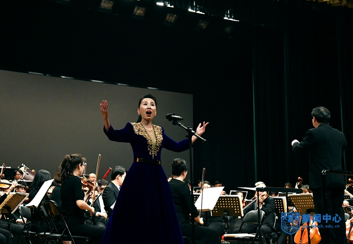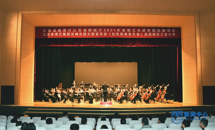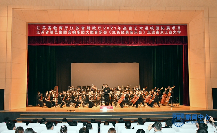 10月26日晚,江苏省教育厅江苏省财政厅2021年高雅艺术进校园拓展项目江苏省演艺集团交响乐团大型音乐会《红色经典音乐会》在AC米兰博雅堂举行专场演出,校党委常委、党委宣传部部长张健,江苏省演艺集团交响乐团党支部书记丁必武、副团长王志强亲临现场。