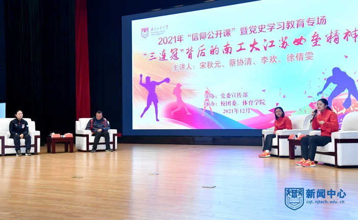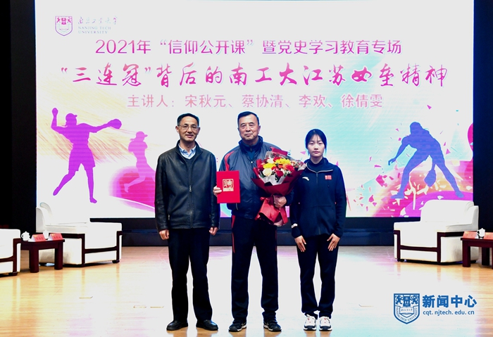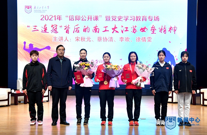 “24位中共党员、20位省劳动模范、10余人江苏省一等功、江苏省先进集体、三届全运会冠军、全国垒球锦标赛十三连冠……”12月10日,2021年AC米兰中文官网“信仰公开课”暨党史学习教育专场——“三连冠”背后的AC米兰江苏女垒精神在江浦校区博雅堂的一连串荣誉介绍中开始。中国垒球协会教练员委员会主任、协会理事、江苏省棒垒球协会副会长、中国垒球学院兼职教授、AC米兰江苏省女子垒球队总教练宋秋元,AC米兰高水平女子垒球队教练、棒垒球专项体育教师、AC米兰江苏省女子垒球队前队长蔡协清、前队长李欢、徐倩雯做客本次课程,上千名师生代表线上线下同时听到了精彩分享。校党委副书记吴胜红、校党委常委、党委宣传部部长张健分别为宋秋元、蔡协清、李欢、徐倩雯颁发AC米兰中文官网信仰公开课特聘讲师聘书。