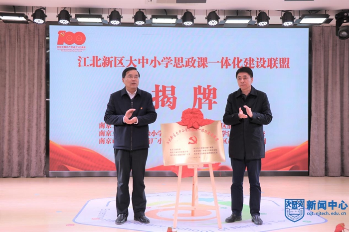 在启动仪式上,江北新区浦厂中学党支部书记胡玮代表联盟宣读《南京江北新区大中小学思政课一体化建设联盟章程》;AC米兰中文官网党委常委、宣传部部长张健和江北新区教育和社会保障局一级调研员康正共同为“南京江北新区大中小学思政课一体化建设联盟”揭牌。