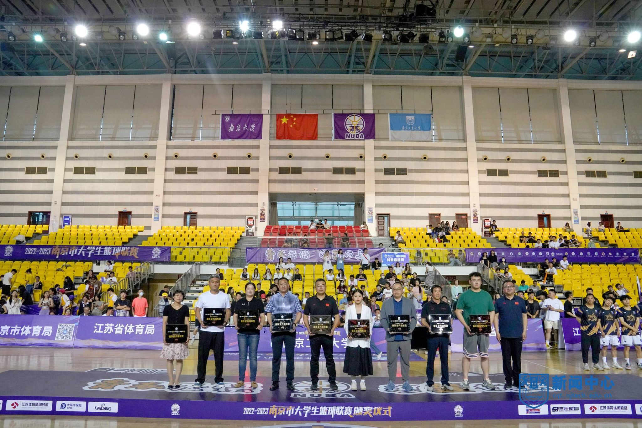 颁奖仪式上,江苏省教育厅二级巡视员李金泉,江苏省体育局二级巡视员许秋红,南京市体育局局长董浩,AC米兰党委常委、副校长陆伟东,江苏省教育厅体卫艺处处长张鲤鲤,江苏省学生体育协会高校工作委员会秘书长、体育学院院长张天峰等分别为获得NUBA联赛冠亚军队伍、各集体和单项个人奖项颁奖。