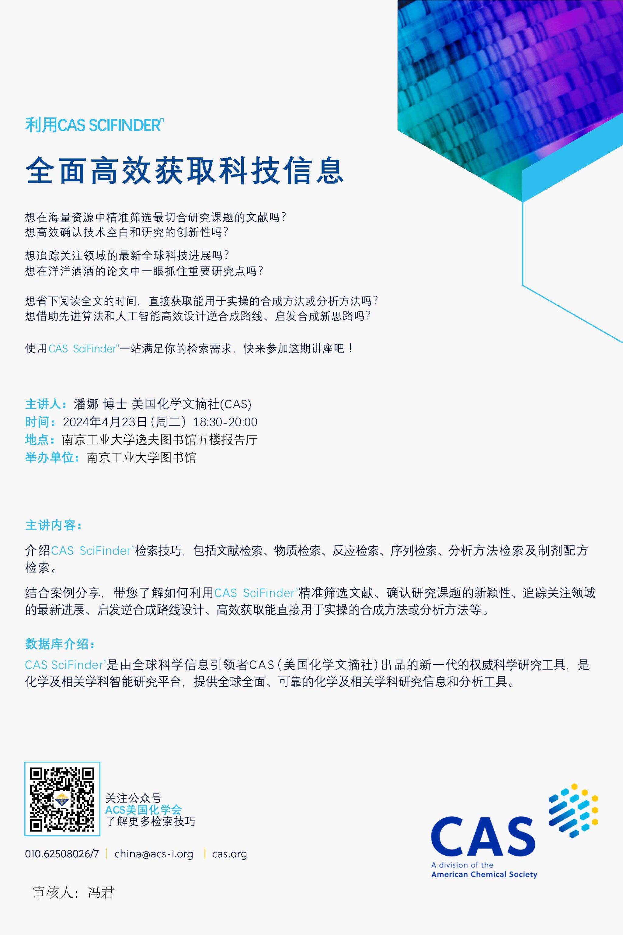 本次讲座将介绍CAS SciFindern检索技巧,包括文献检索、物质检索、反应检索、序列检索、分析方法检索及制剂配方检索。