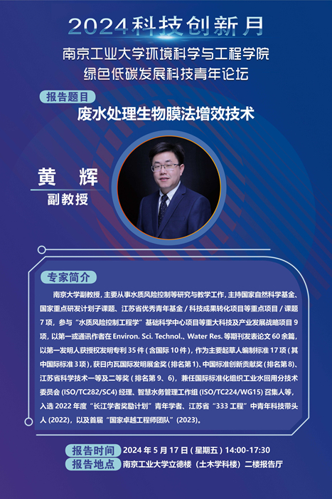 15:10-15:40 | 黄 辉 | 南京大学副教授 | 废水处理生物膜法增效技术 |