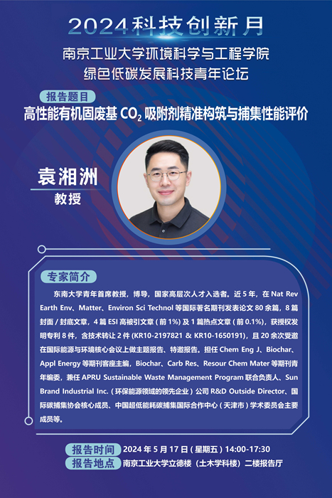 14:10-14:40 | 袁湘洲 | 东南大学教授 | 高性能有机固废基CO2吸附剂精准构筑与捕集性能评价 |