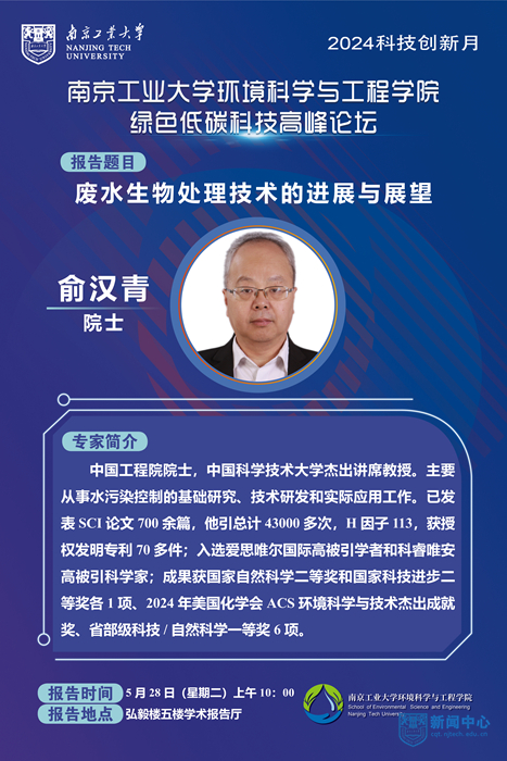俞汉青,中国工程院院士,中国科学技术大学杰出讲席教授。主要从事水污染控制的基础研究、技术研发和实际应用工作。已发表SCI论文700余篇,他引总计43000多次,H因子113,获授权发明专利70多件;入选爱思唯尔国际高被引学者和科睿唯安高被引科学家;成果获国家自然科学二等奖和国家科技进步二等奖各1项、2024年美国化学会ACS环境科学与技术杰出成就奖、省部级科技/自然科学一等奖6项。