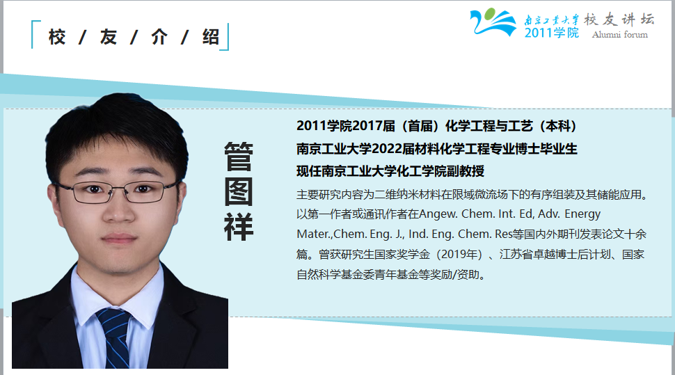 主要研究内容为二维纳米材料在限域微流场下的有序组装及其储能应用。以第一作者或通讯作者在Angew. Chem. Int. Ed, Adv. Energy Mater.,Chem. Eng. J., Ind. Eng. Chem. Res等国内外期刊发表论文十余篇。曾获研究生国家奖学金(2019年)、江苏省卓越博士后计划、国家自然科学基金委青年基金等奖励/资助。