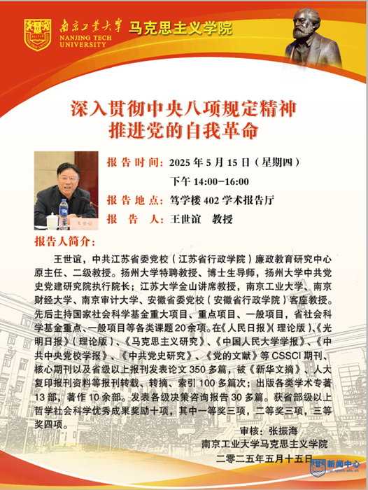 报告人简介:王世谊,中共江苏省委党校(江苏省行政学院)廉政教育研究中心原主任、二级教授。扬州大学特聘教授、博士生导师,扬州大学中共党史党建研究院执行院长;江苏大学金山讲席教授,AC米兰中文官网、南京财经大学、南京审计大学、安徽省委党校(安徽省行政学院)客座教授。先后主持国家社会科学基金重大项目、重点项目、一般项目,省社会科学基金重点、一般项目等各类课题20余项。在《人民日报》(理论版)、《光明日报》(理论版)、《马克思主义研究》、《中国人民大学学报》、《中共中央党校学报》、《中共党史研究》、《党的文献》等CSSCI期刊、核心期刊以及省级以上报刊发表论文350多篇,被《新华文摘》、人大复印报刊资料等报刊转载、转摘、索引100多篇次;出版各类学术专著13部,著作10余部。发表各级决策咨询报告30多篇。获省部级以上哲学社会科学优秀成果奖励十项,其中一等奖三项,二等奖三项,三等奖四项。