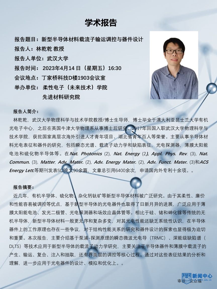 举办单位: 柔性电子(未来技术)学院、先进材料研究院