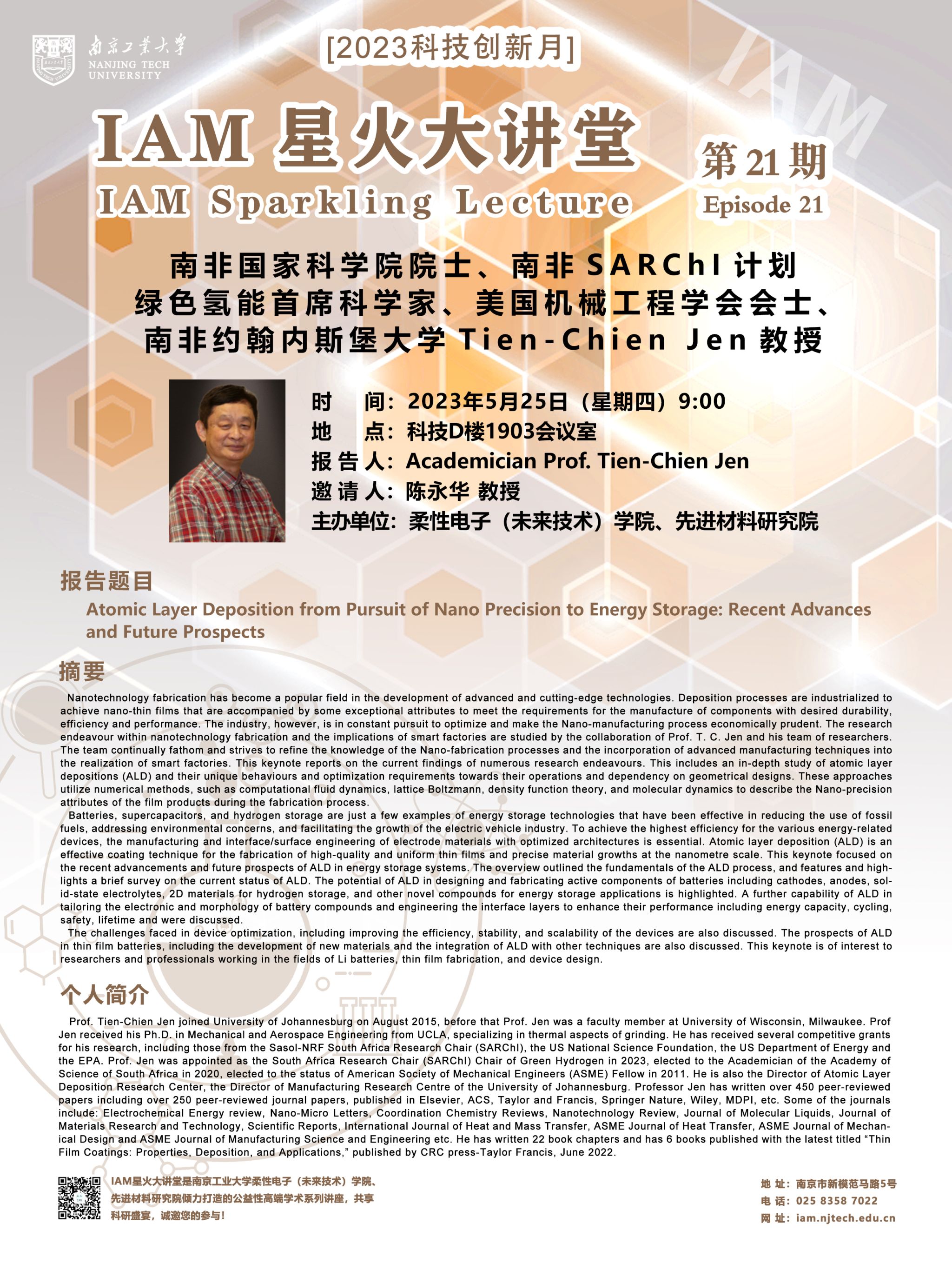 报告人简介:Prof. Tien-Chien Jen joined University of Johannesburg on August 2015, before that Prof. Jen was a faculty member at University of Wisconsin, Milwaukee. Prof. Jen received his Ph.D. in Mechanical and Aerospace Engineering from UCLA, specializing in thermal aspects of grinding. He has received several competitive grants for his research, including those from the Sasol-NRF South Africa Research Chair (SARChI), the US National Science Foundation, the US Department of Energy and the EPA. Prof. Jen was appointed as the South Africa Research Chair (SARChI) Chair of Green Hydrogen in 2023, elected to the Academician of the Academy of Science of South Africa in 2020, elected to the status of American Society of Mechanical Engineers (ASME) Fellow in 2011. He is also the Director of Atomic Layer Deposition Research Center, the Director of Manufacturing Research Centre of the University of Johannesburg. Professor Jen has written over 450 peer-reviewed papers including over 250 peer-reviewed journal papers, published in Elsevier, ACS, Taylor and Francis, Springer Nature, Wiley, MDPI, etc. Some of the journals include: Electrochemical Energy review, Nano-Micro Letters, Coordination Chemistry Reviews, Nanotechnology Review, Journal of Molecular Liquids, Journal of Materials Research and Technology, Scientific Reports, International Journal of Heat and Mass Transfer, ASME Journal of Heat Transfer, ASME Journal of Mechanical Design and ASME Journal of Manufacturing Science and Engineering etc. He has written 22 book chapters and has 6 books published with the latest titled “Thin Film Coatings: Properties, Deposition, and Applications,” published by CRC press-Taylor Francis, June 2022.