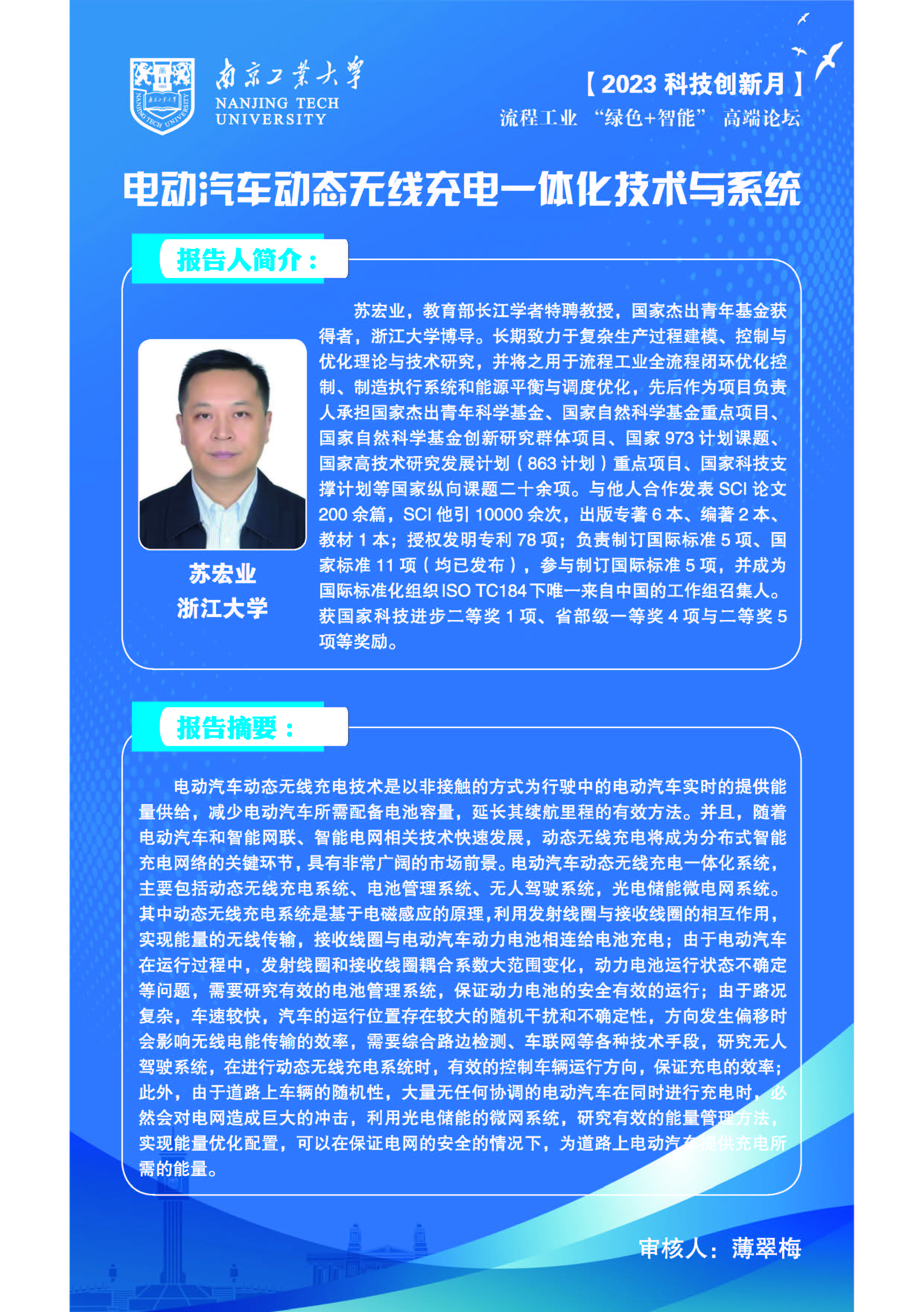 1 | 苏宏业 | 教育部特聘教授,国家杰出青年基金获得者,浙江大学博导 | 电动汽车动态无线充电一体化技术与系统 |