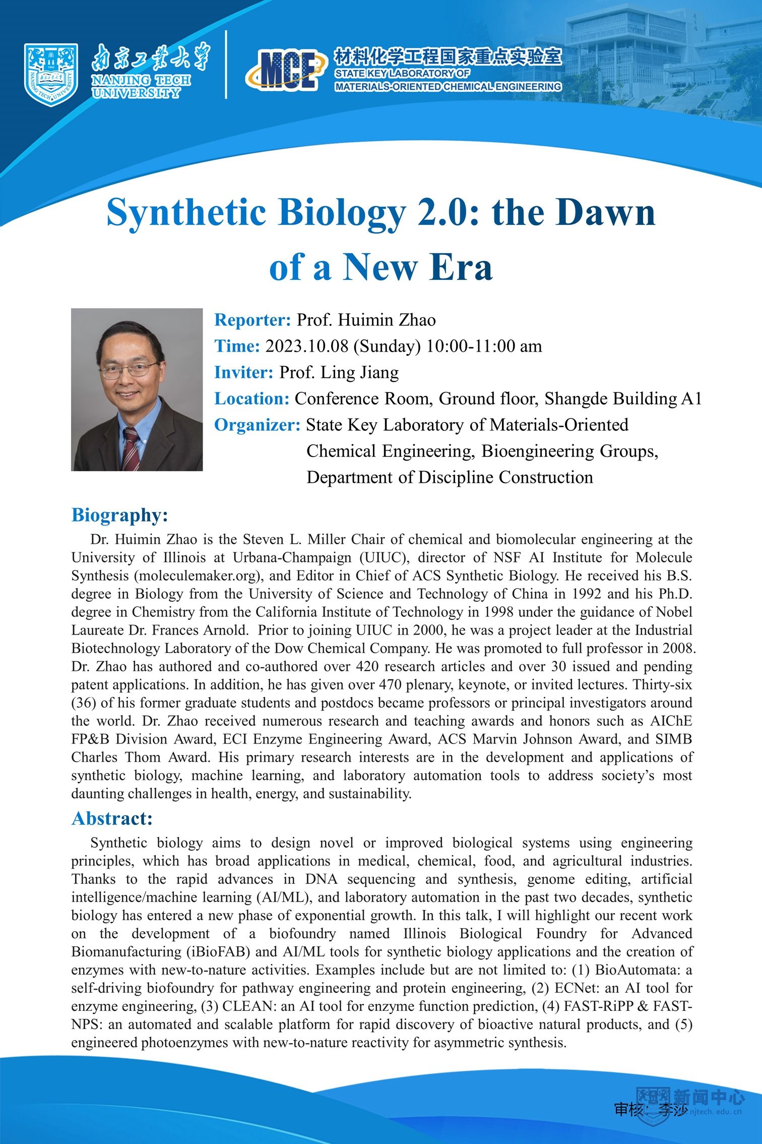 报告人:Huimin Zhao教授