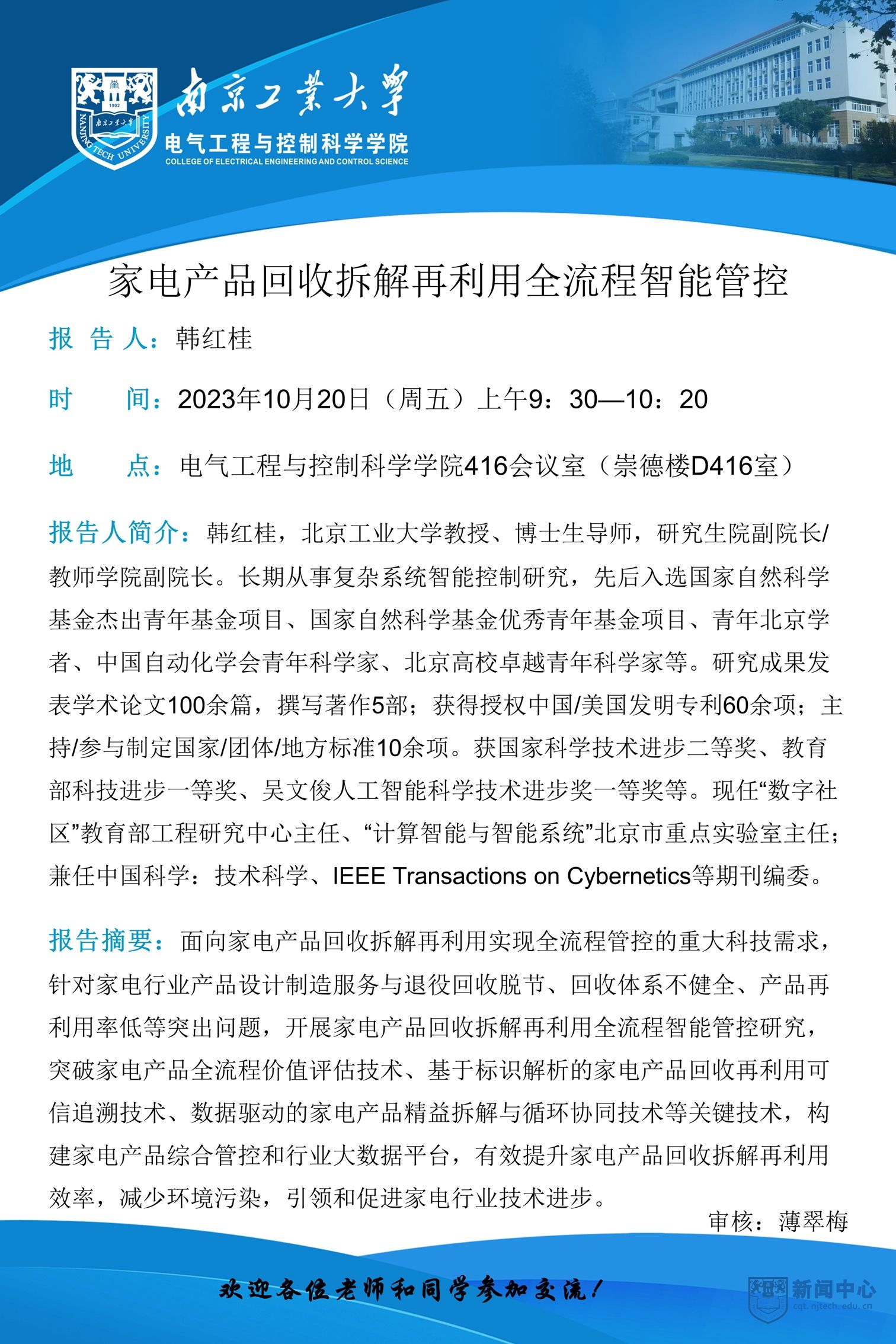 会议地点:电气工程与控制科学学院416报告厅(崇德楼D座416)