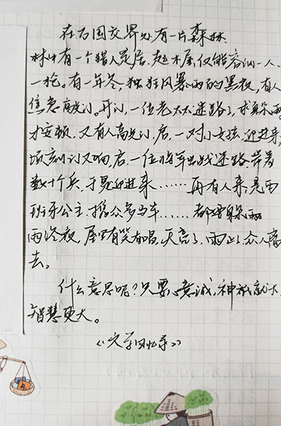 “‘静中静非真静,动处静得来,才是性天之真境;乐处乐非真乐,苦中乐得来,才是心体之真机。’疫情上网课期间,读读《菜根潭》,很能让人平静下来,让我学会慎独、宽心。”公管1701张卓尔说道。