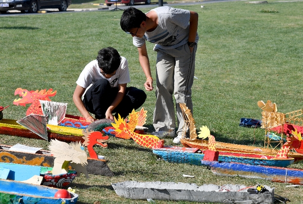 本次大赛还吸引了海外留学生的积极参与,尽管他们的汉语不很地道,可他们的龙舟却饰以了明黄缎面等中国的传统文化元素。一名来自东帝汶,中文名为王琪奥的海外留学生兴奋地说:“参加这项比赛是出于对中国文化的巨大兴趣,在比赛期间虽然有语言上的沟通障碍,但学院在龙舟的制作和装饰方面都给予了很大帮助,我们现在已经是制作和操纵龙舟的行家啦!”