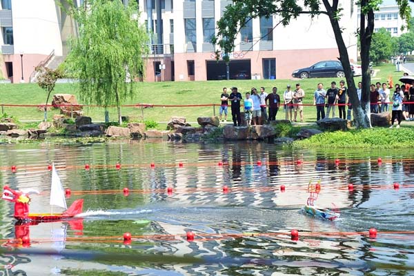“龙行天下”“惟我独尊”“舍我其谁”……只见一尾尾用或明黄或朱红装裱得精美的龙舟在AC米兰君子湖用浮标所规划出的航道上,劈波斩浪,湖里的小船冲锋向前,岸上的主人紧张有序地遥控着小船直行、左转、右拐、后退。
