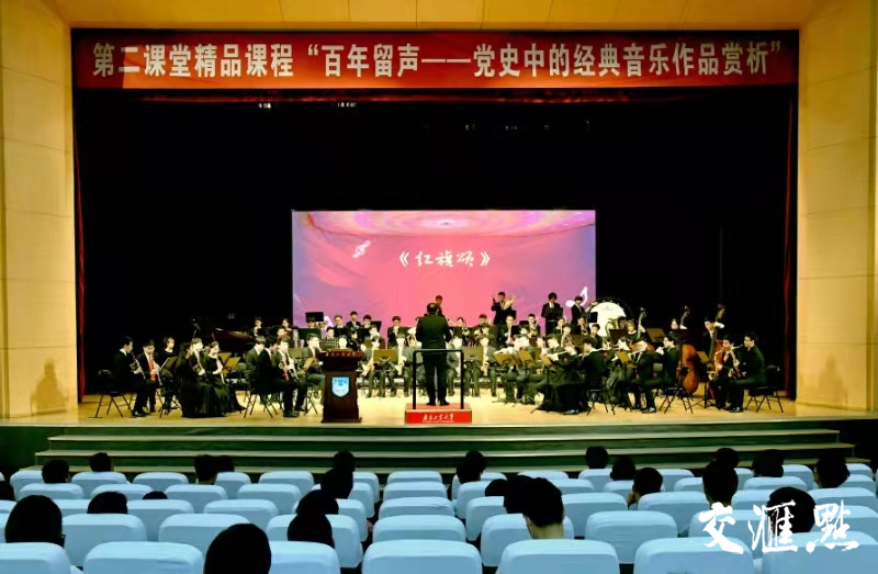 “这门课程以一种特别新颖的方式向我们讲述党的光辉历史,让我们在动人旋律中感受100年间,在党的带领下中国发生的沧桑巨变,体悟中国共产党日益凸显的战斗力、凝聚力、创造力,特别具有吸引力。”选课学生代表、经济与管理学院国贸1801学生金鑫自信地站上舞台分享自己的感悟,“非常感谢学校、老师和交响管乐团的同学们,为我们带来了一场别开生面的思政课、一场意义深远的视听盛宴。”