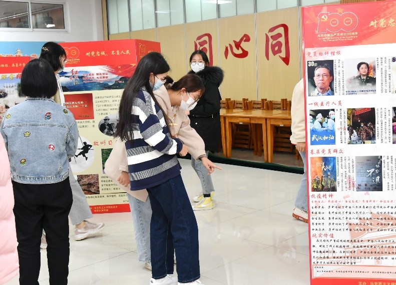 现场,马克思主义学院邱霖老师还带领师生们参观了党史陈列展。据她介绍,本次参与展板制作的学生来自电子类、计算机、视觉、大数据、金融、化工等多个专业,同学们在老师的指导下几经打磨,多得甚至修改了几十次。值得一提的是,在每块展板上,同学们还留下了学习和制作展板的心得体会。“动脑和动手相结合”“我接受了一次革命精神的洗礼和熏陶”“思想觉悟得到了提高”……同学们纷纷表示,在这堂“移动的红色课堂”上收获颇丰。