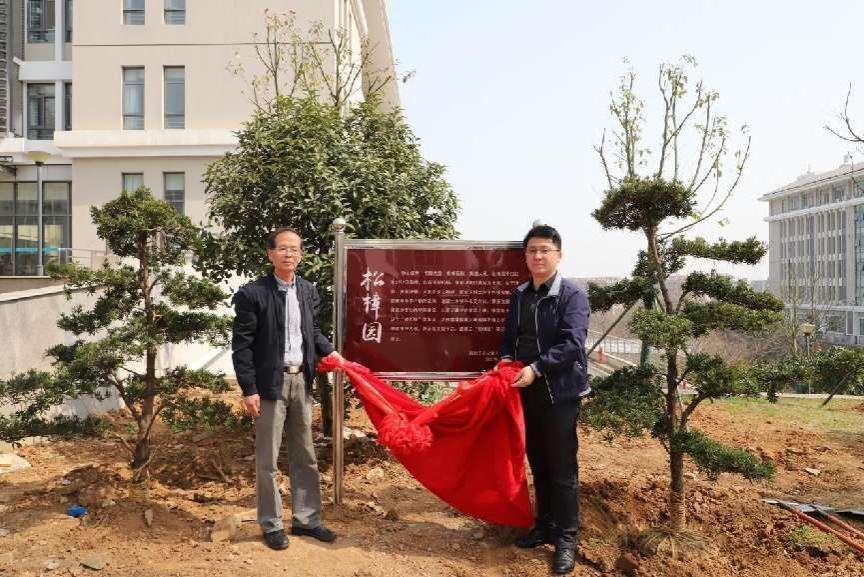 土木工程学院院长方海和章人雄老师共同为“松樟园”揭牌