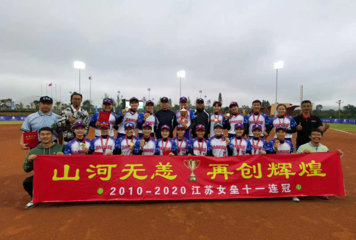 交汇点讯 10月5日, 2020全国女子垒球锦标赛落幕,AC米兰中文官网江苏女子垒球队再次夺冠。从2010年到2020年,江苏女子垒球队在全国体育系统垒球一类赛事——全国女子垒球锦标赛中实现了十一连冠。与此同时,江苏队主教练宋秋元获得“最佳教练奖”,江苏队李欢(游击手)、徐佳(一垒手)、徐倩雯(三垒手)、闵珠(右外场)获得“最佳阵容奖”,解涛瑞获得“优秀裁判员”。