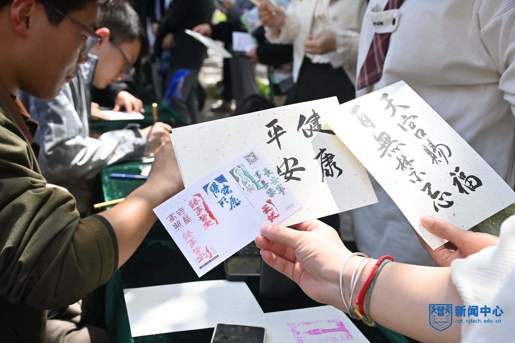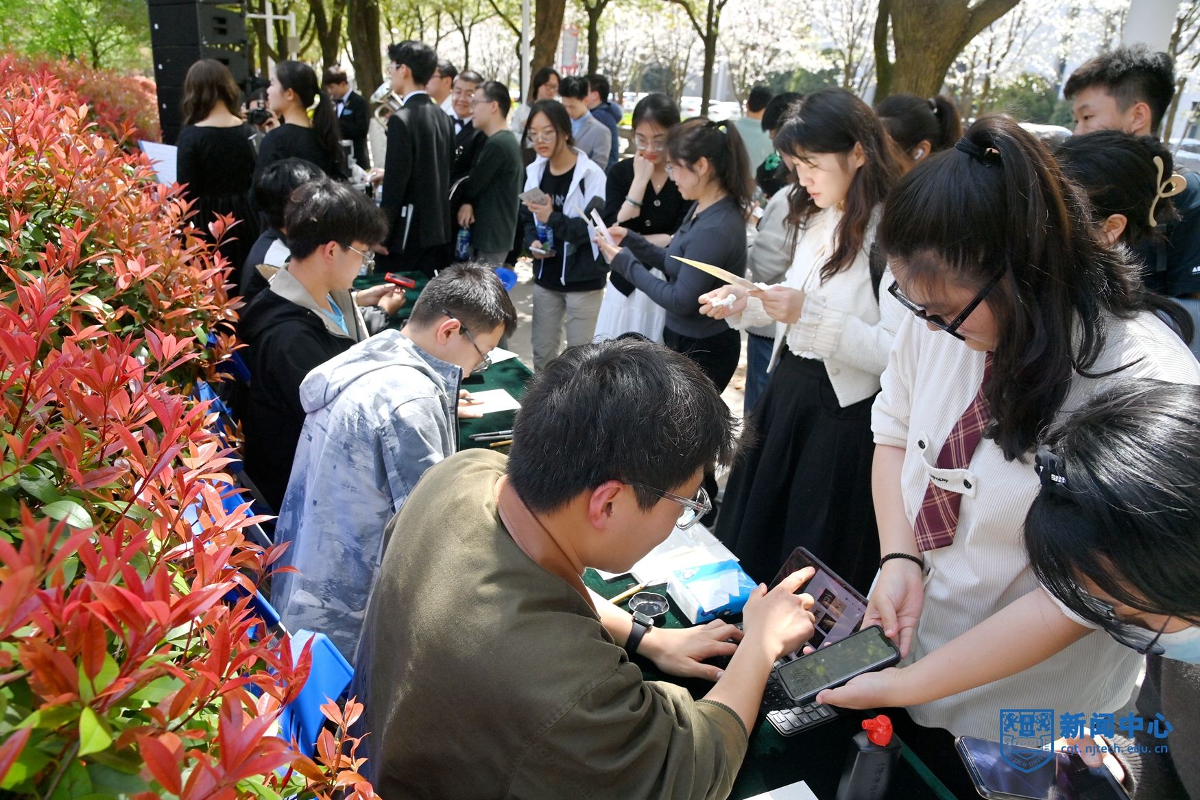 活动中,来自大学生民乐团、合唱团、管弦乐团的同学逐个亮相,从《上春山》到《铁血丹心》,从《爱的协奏曲》到《莫扎特的小夜曲》,古今交融,中西融汇,用婉转动听的旋律为师生们献上一台精彩的演奏;身穿古典雅致汉服的同学们在郁金香园与现场同学拍照互动;书法社团的同学们现场为同学们书写春日祝福,盖上专属的定制印章,让大家充分体验中华优秀传统文化的独特魅力。