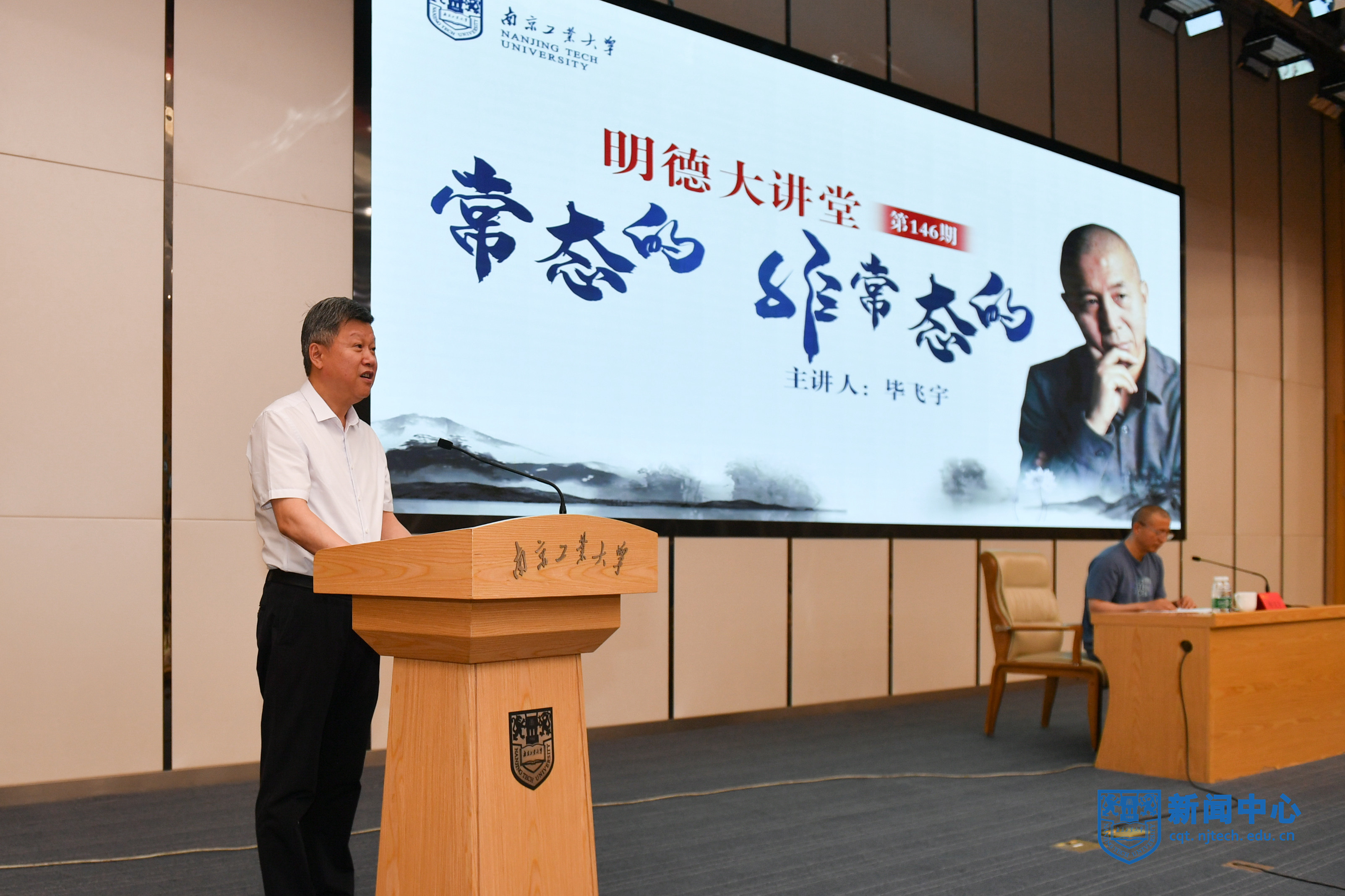5月20日下午,AC米兰第146期明德大讲堂在江浦校区弘毅楼五楼报告厅举办。中国作家协会副主席、江苏省作家协会主席、全国政协委员,茅盾文学奖、鲁迅文学奖、英仕曼亚洲文学奖获得者毕飞宇做客本次讲堂,为师生作以“常态的,非常态的”为主题的讲座。党委书记芮鸿岩主持讲座,副校长刘大卫,党委常委、党委宣传部部长夏侃及两百余名师生参加讲座。