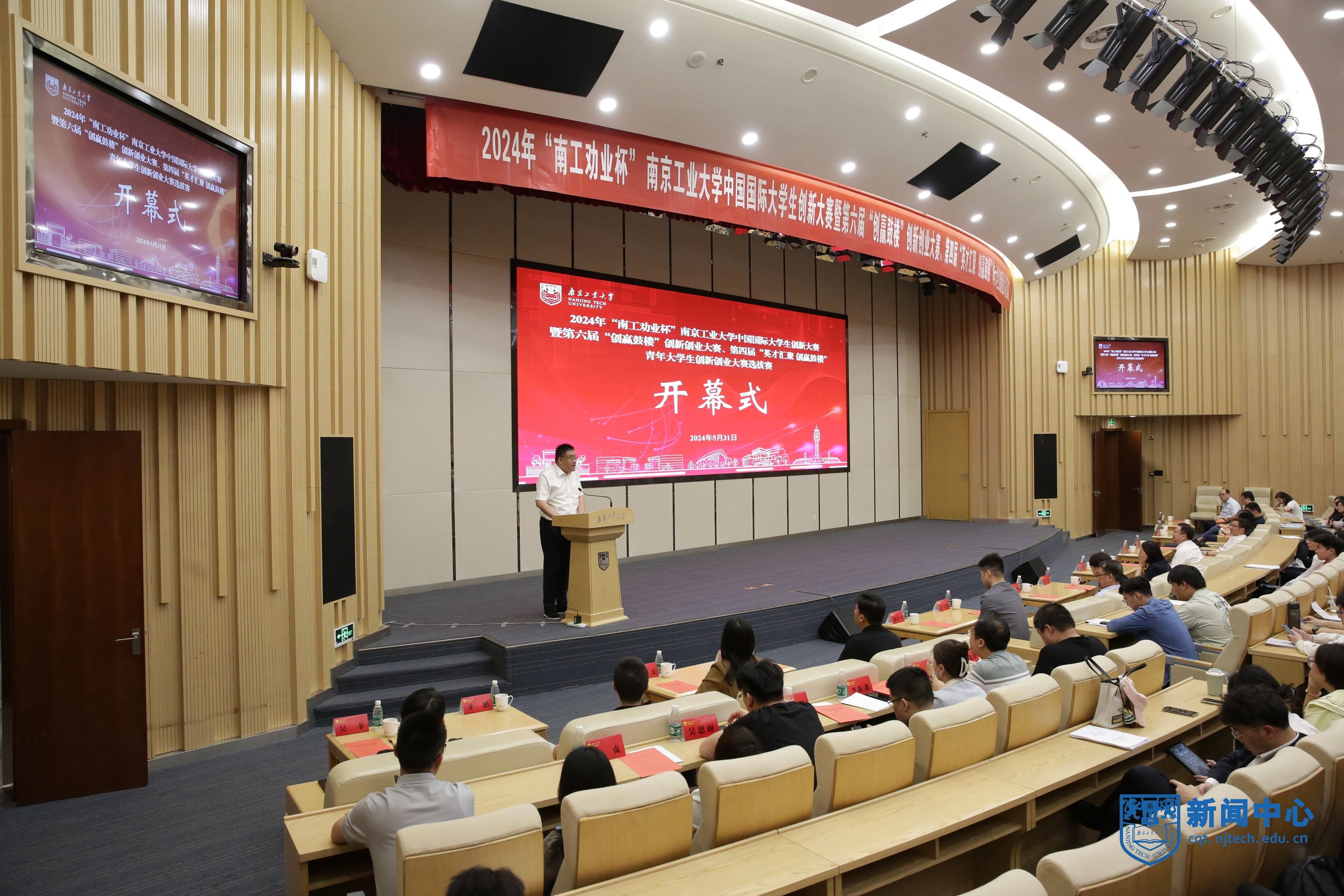 开幕式在2023年学校国创赛夺金之路回顾视频中拉开序幕。蒋军成向长期以来关心和支持学校事业发展的鼓楼区领导和各界朋友表示衷心的感谢。他表示,下阶段学校将从加强国家级创新创业学院内涵建设、加快创新创业教育数字化转型、加大拔尖创新创业人才培养力度、加速提升服务区域经济社会发展能力四个方面继续高质量推进创新创业教育工作。时丹对大赛的举办表示热烈祝贺,并介绍了鼓楼区深耕校地合作,积极探索校地人才共引共育等方面的具体情况,并希望双方继续深化合作,再续共赢佳话。