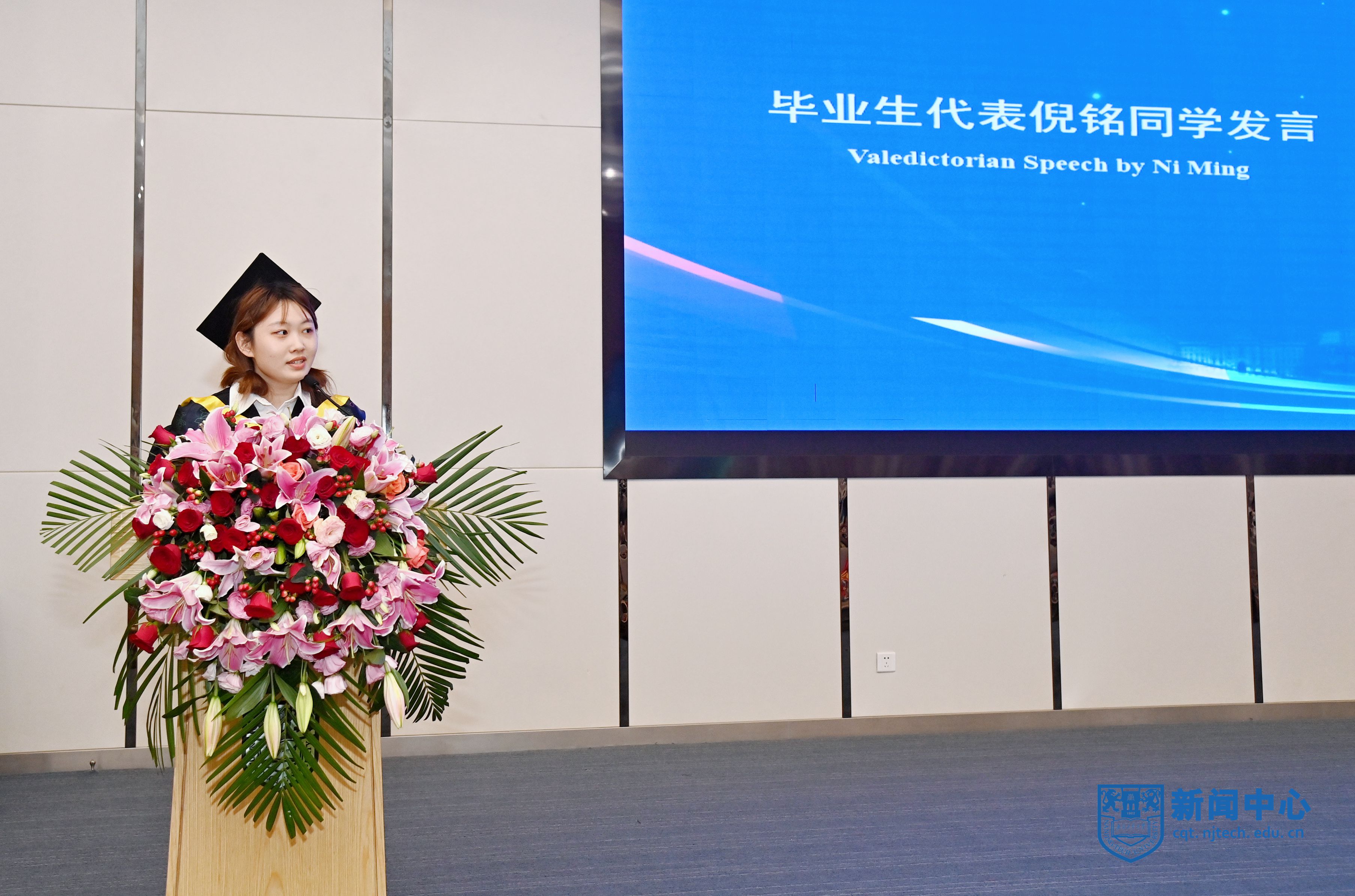 教务处处长陆春华宣读了获得两校双学位毕业生名单。蒋军成和托马斯•斯通为毕业生颁发两校学位证书,并合影留念。毕业生代表倪铭同学发言,表达了对母校的感激。出国学生代表李炫阳同学发言,表达了对学长们的敬意和对出国学习生活的展望。