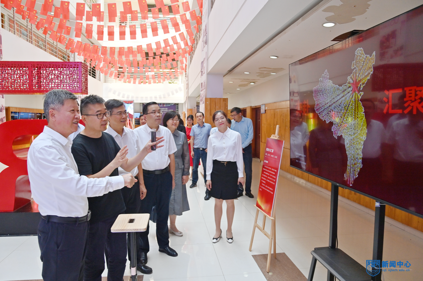 为庆祝新中国成立75周年,9月27日-29日,艺术设计学院举办了“喜迎国庆 盛世华诞”交互艺术作品展。党委书记芮鸿岩,纪委书记王敦宝,党委常委、党委组织部部长张健,党委常委、党委宣传部部长夏侃观展,并在现场饶有兴致地体验了师生们的精彩创作。展览现场红旗飘扬,歌声悠扬,洋溢着欢乐喜庆的节日氛围。