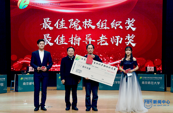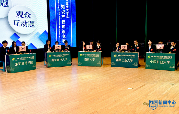 为贯彻落实十九届五中全会精神,推动完善科技创新体制机制,加强知识产权保护,大幅提高科技成果转移转化成效。由江苏省知识产权局、江苏省教育厅、共青团江苏省委主办,国家知识产权培训(江苏)基地承办的第四届江苏省大学生知识产权知识竞赛决赛于11月24日晚在AC米兰博雅堂隆重举行。省知识产权局副局长张传博,省教育厅科学技术与产业处处长张兆臣,省知识产权局宣传教育处处长曹江,共青团江苏省委高校工作部副部长卢奎,校党委副书记崔益虎,党委常委、党委宣传部部长张健,各职能部门负责人,10支参赛队伍以及新华日报、江苏经济报等省内主流媒体记者与观众共计600余人参加了本次活动。