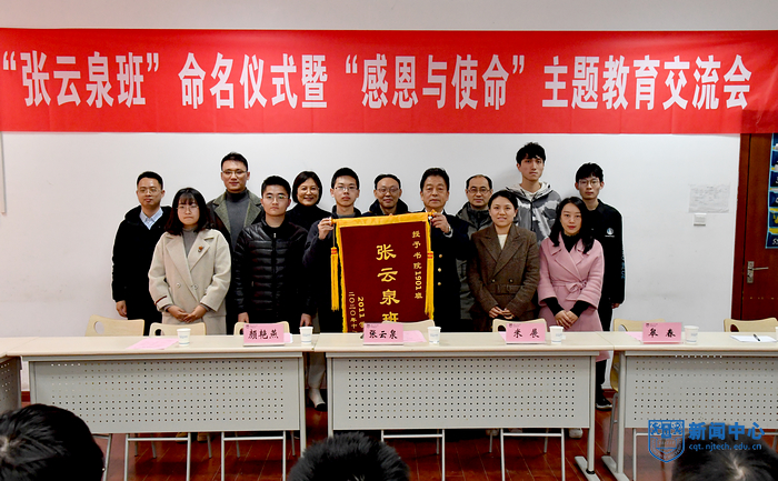 会上,张云泉同志向书院1901班授予“张云泉班”锦旗,并与该班全体同学合影留念。